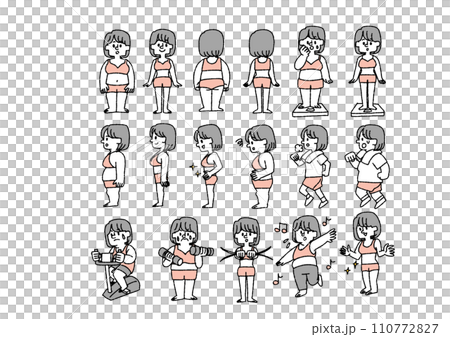 ダイエットを頑張る痩せている女性と太っている女性のイラストセットのイラスト素材110772827- PIXTA。