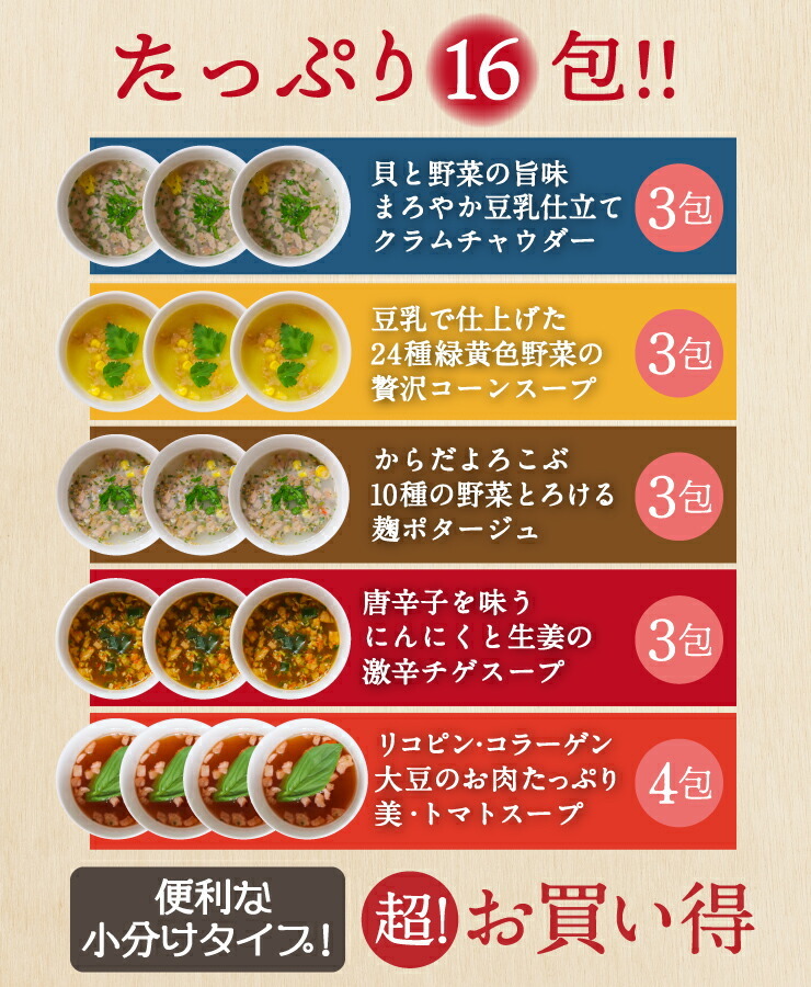 福袋 温活ダイエットスープ5種類 計16食セットダイエット食品 プロテイン 置き換えダイエット 満腹感 ダイエットスープ 糖質制限 低糖質寒天と蒟蒻でとろ~り -ぷるるん姫ギフトモール店 - プレゼント&ギフトのギフトモール。