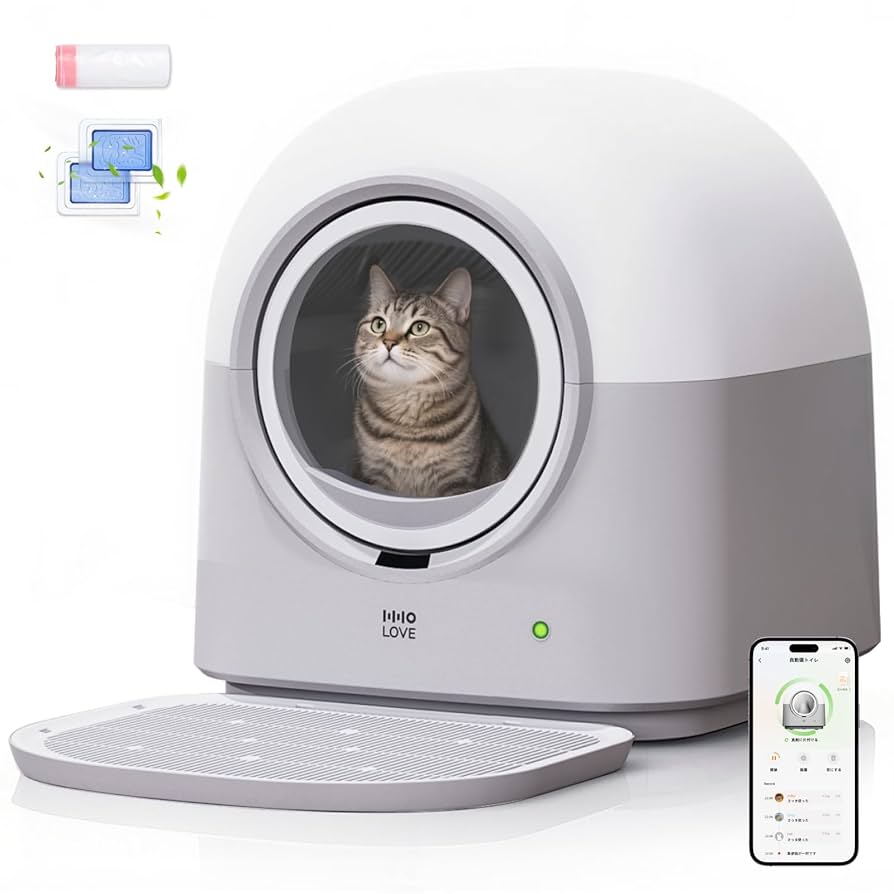AmazonHHOLOVE全自動猫トイレ 猫 自動トイレ 猫トイレ 自動清掃 AI搭載センサー挟み込み防止PIR検知多頭飼い対応 大容量 ダブル脱臭 自動脱臭 お留守番 遠隔操作 アプリ連携 iOS Android対応 飛び散らない 取り外し可能 日本語対応日本語説明書付き 簡単。