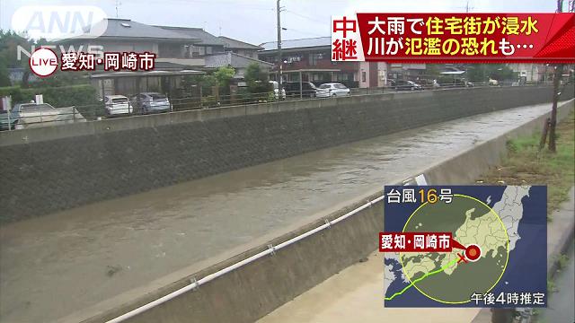 午後3時50分時点 東海3県で非常に激しい雨 乙川が氾濫危険水域超えた愛知県岡崎市の様子は - YouTube。