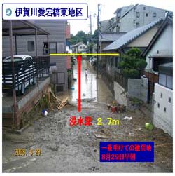 岡崎市伊賀川における2008年8月末豪雨災害調査。