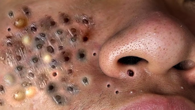 角栓除去 大物!大量のニキビを芯出しするのって気持ちいい Blackhead Removal Show - YouTube。