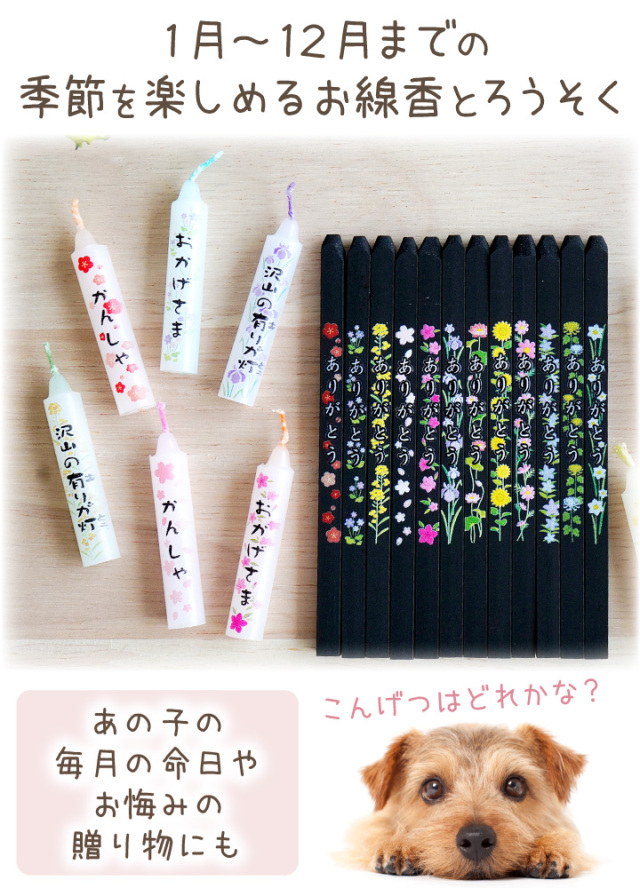 ペット供養 沢山の有りが灯 ろうそく & お線香 お悔み ギフト セット 月命日 四十九日 可愛い かわいい 犬 猫 ペット ペット仏具 プレゼントメモリアル お供え 地蔵 ありがとう 箱入り線香 箱入りろうそく。