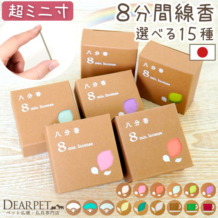 ペット 短い線香 八分香 約8分燃焼 4.5cm 超ミニ寸 選べる 15種類 ネコポス対応 小さい ミニサイズ ペット仏具 ペット仏壇 お供え 犬 猫お香 お盆 かわいい おしゃれ お線香 白檀 ローズ ユリ ひのき いい香りペット仏壇仏具のディアペット。