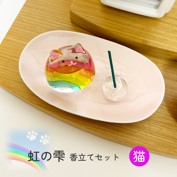 虹の雫 香立てセット 猫線香立て 香皿 ペット供養 ペット仏具 線香 お香 犬 猫 かわいい ギフト リュウコドウ商品詳細一流の仏壇・仏具をお求め安い価格で提供久家堂。
