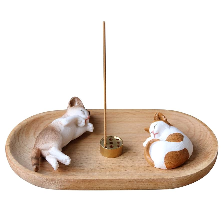Amazon.co.jp: お香立て 猫 真鍮 横置き ネコ 可愛い 線香立て 線香 かわいい 木製のお皿 お香 立て プレート 和風 ブナ ウッド木製 おしゃれ お線香立て 香立て 線香たて アロマ スティック 渦巻型の線香 せんこうたて仏壇用 おこうたて インセンスホルダー 線香炉 お香。