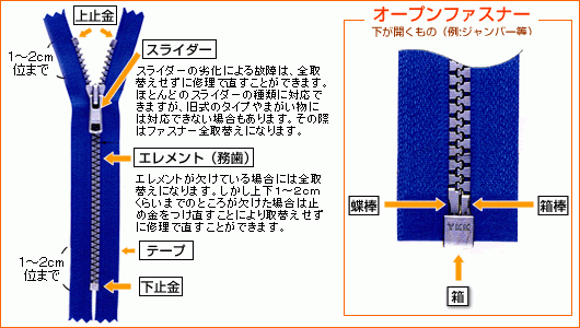 ファスナーが壊れたらどうすればいい?意外と知らないファスナーの仕組みと修理内容・費用革修復どっとコムお役立ち情報。