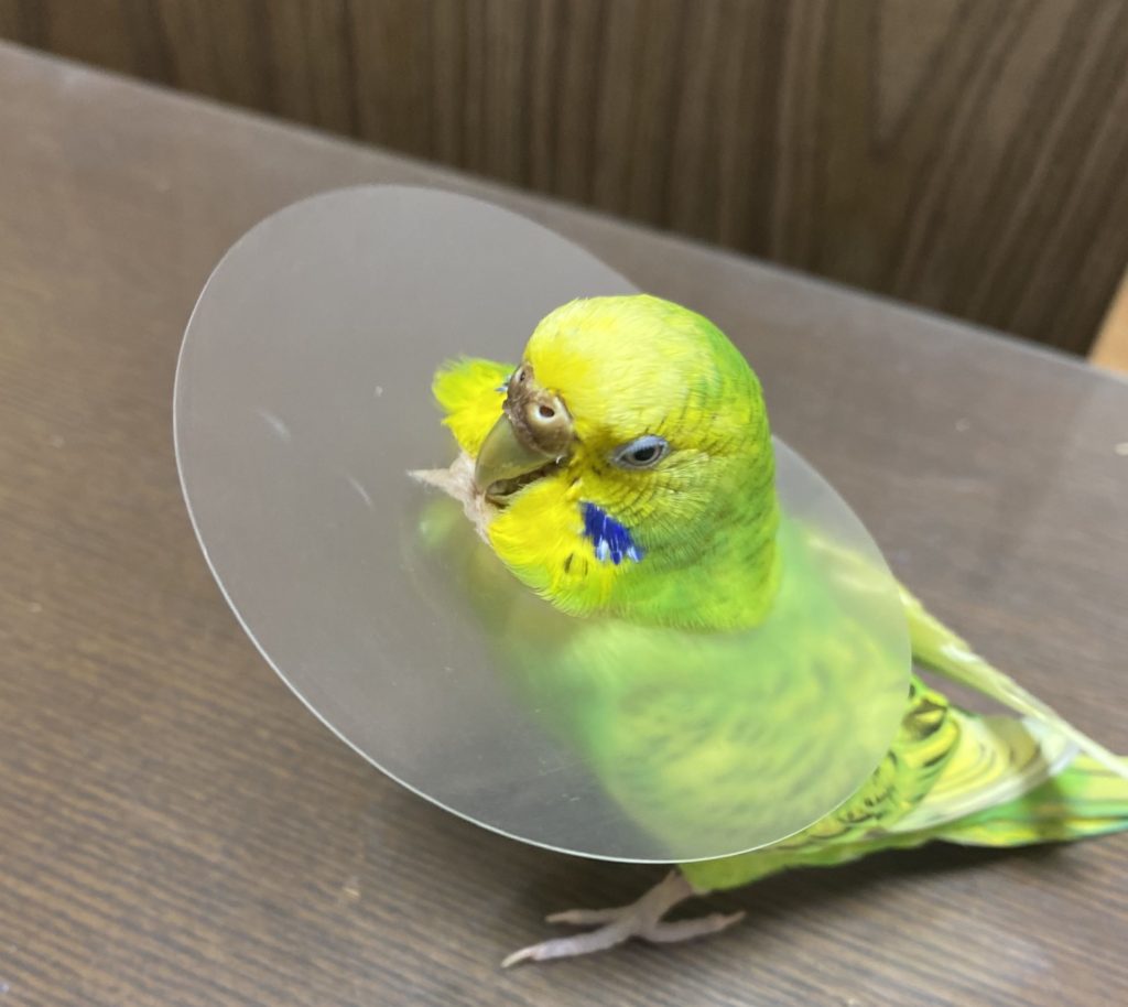 我が家のインコたち㉖〜再び毛引き症が悪化!手作りエリザベスカラーを装着です 後編雨がやんだら裏庭に。