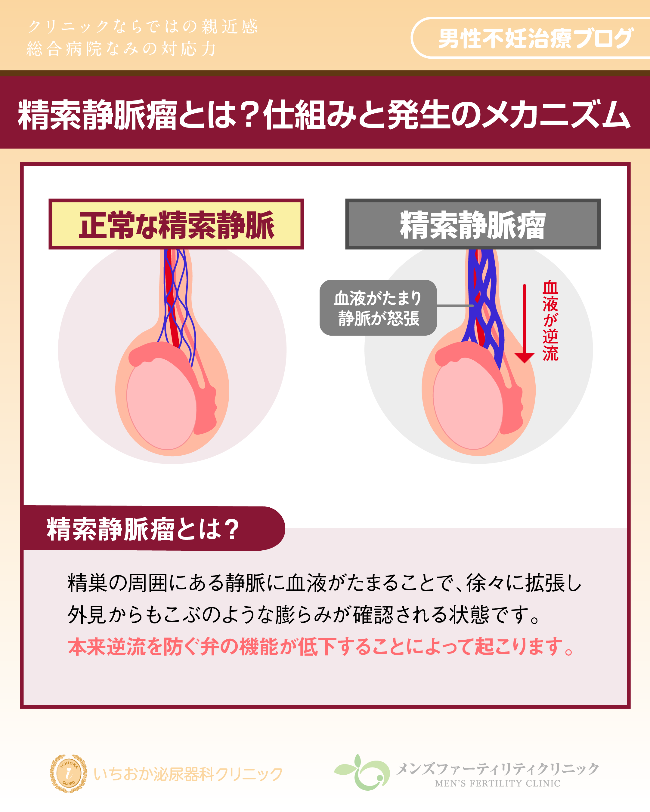 男性不妊の代表的な原因「精索静脈瘤」を徹底解説男性不妊症について理解するブログ いちおか泌尿器科クリニック。