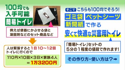 まだ間に合う防災の準備」被災時に備える物は?100均の商品で作れる『災害用トイレ』国際災害レスキューナースが解説TBS NEWS DIG3ページ。