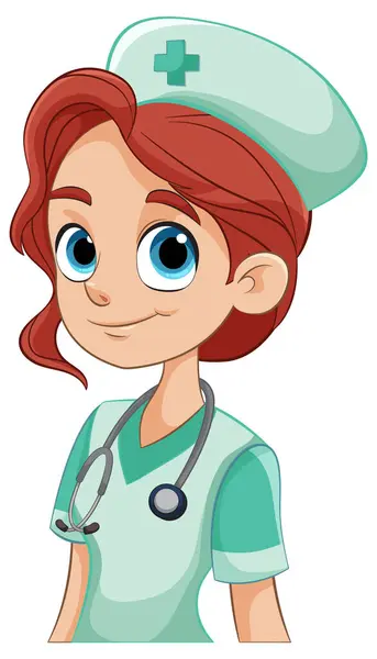 ベクトルイラストで温かさと献身を発揮するミニマルデザインのスタイルを示す帽子をかぶったプロのユニフォームを着た自信のある女性看護師Premiumベクトル素材。