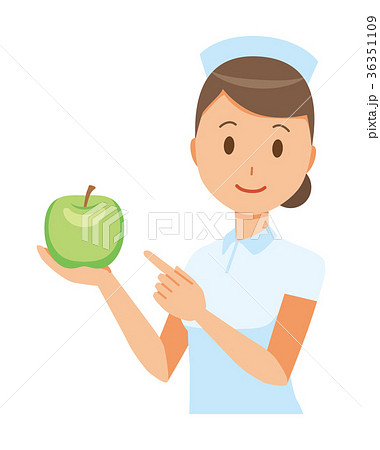 ナース帽と白衣を着た女性看護師が青リンゴを持っているのイラスト素材36351109- PIXTA。