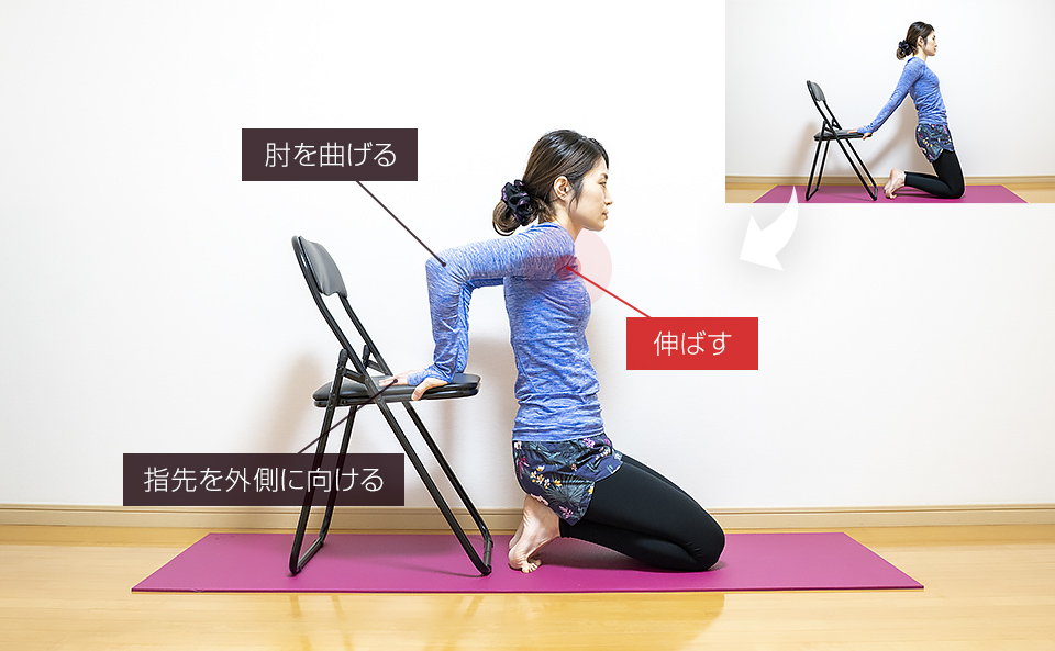 腕伸ばしストレッチ:今日の1ポーズストレッチ:日経Gooday グッデイ。