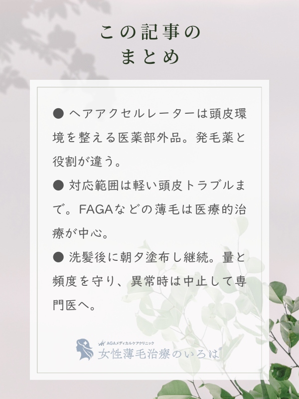 ヘアアクセルレーターの効果と女性の薄毛改善への正しい使い方女性薄毛治療のいろは - AGAメディカルケアクリニック。