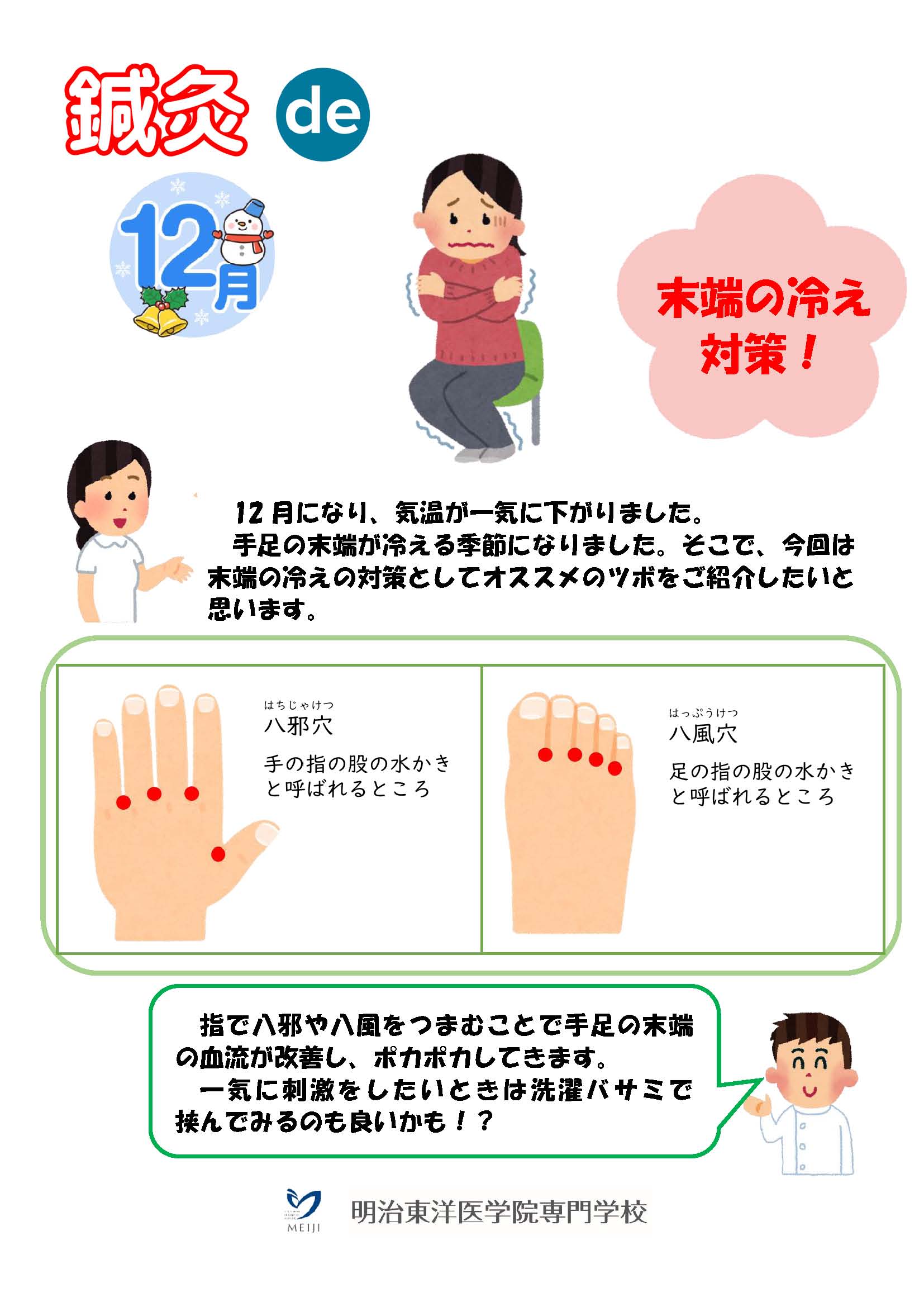 ≪12月≫ 末端の冷え対策! – 明治東洋医学院専門学校 附属治療所。