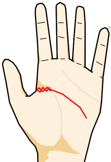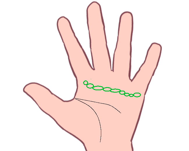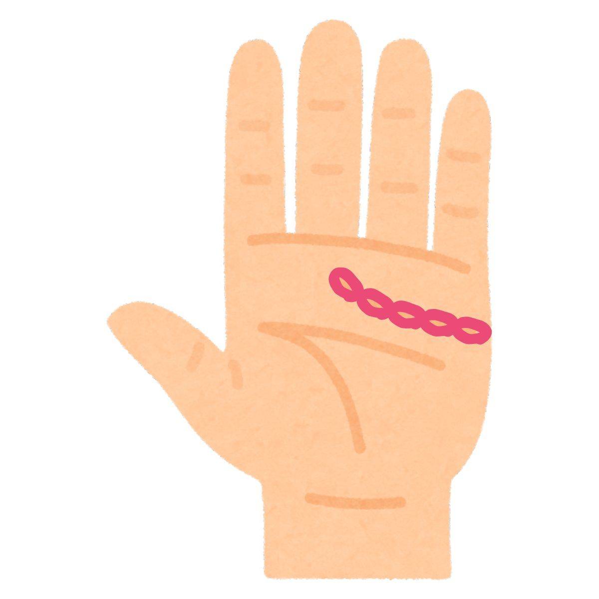 生命線が鎖状になっている時の見方 - 手相の見方大事典テソペディア。