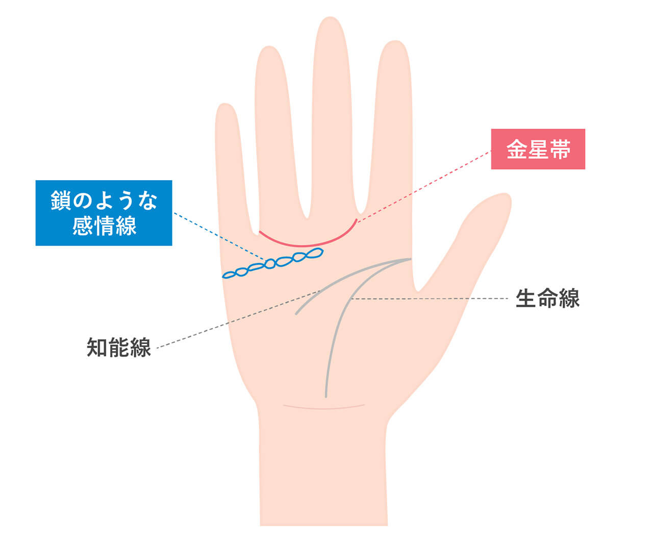 感情線が鎖状の手相はガラスのハート!対策の鍵は知能線 - 手相LABO 星健太郎 Hoshi。
