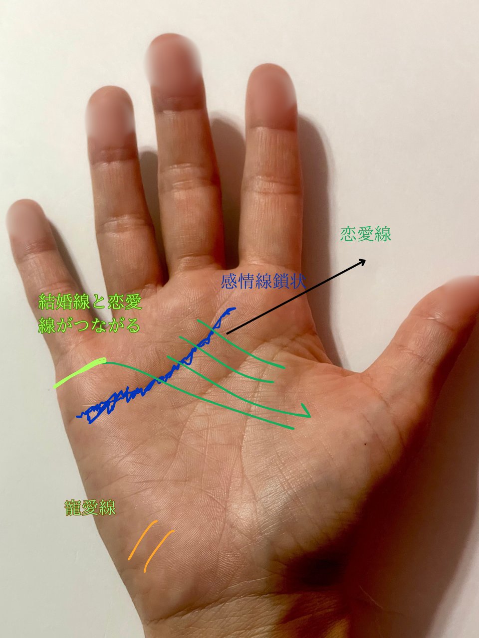 NONの日々健やかブログ〜手相・タロット・四柱推命:男心をくすぐる恋多き女性の相ー感情線の鎖状線。