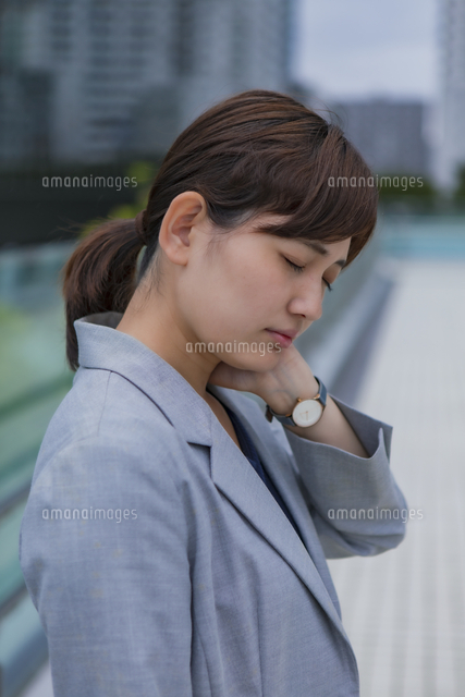 首に手をあてる女性 11019040739 の写真・イラスト素材アマナイメージズ。