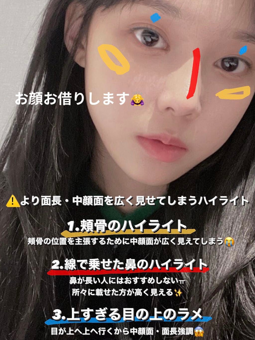 NAKAMURA RYOTA on X: "面長コンプレックス攻略方 中顔面の面長には ・パーツが上下に離れてる ・人中が長い・目が下の方にあるタイプがいる 見た目が変わりやすいのは ・眉毛の印象 ・まつ毛 ・アイライン ・涙袋 ・チーク ・髪型など 少しで変わる! 面長は悪いわけ。