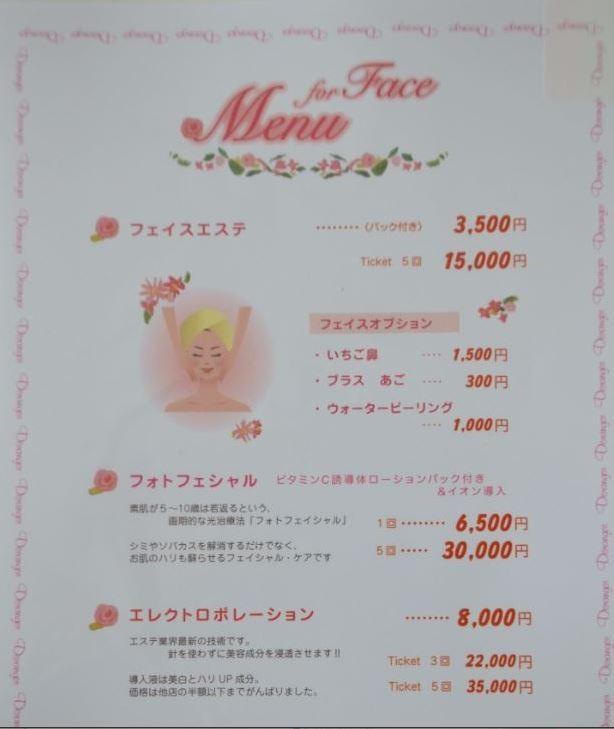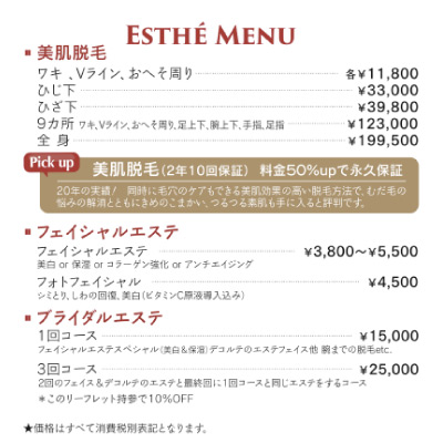 料金・メニュー エステメニュー印刷株 JP-mix。