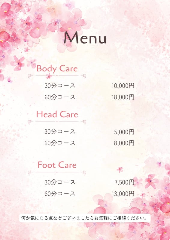エステメニュー表無料テンプレートデザイン。イラストや画像付きも豊富 - Canva キャンバ。