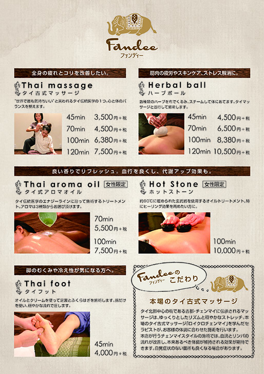 2019年9月〜料金表 - 松山市のタイ古式マッサージ・スクールKERO。