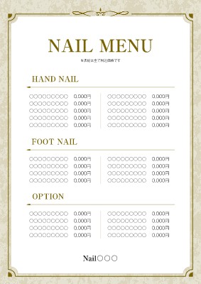 ネイルサロンのメニュー表 エレガント の無料メニューテンプレート 10374 - デザインAC。