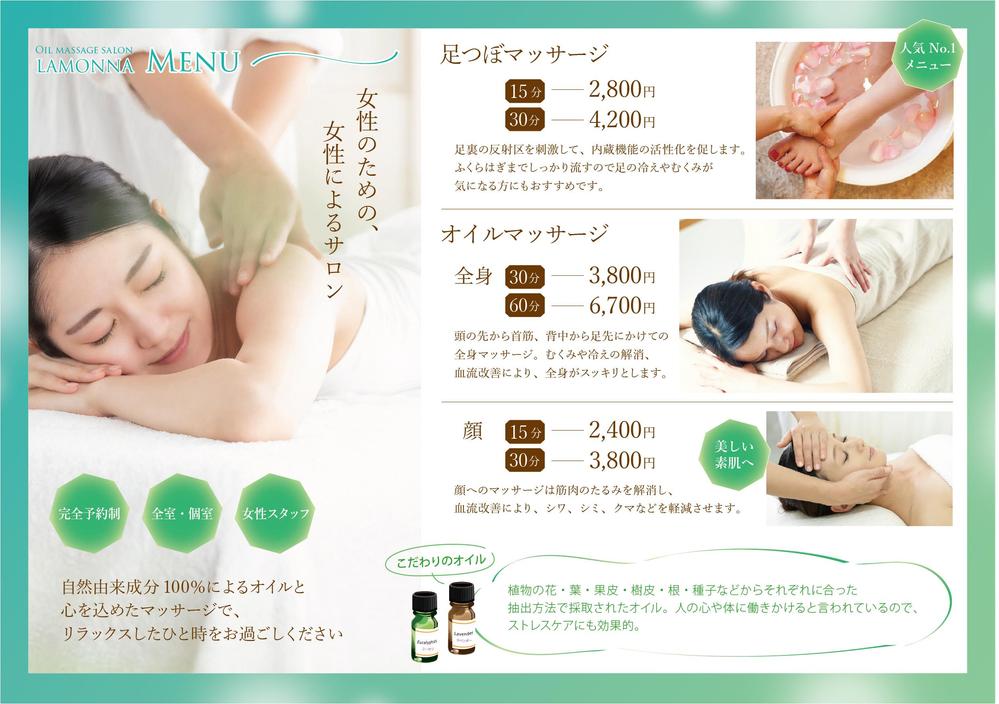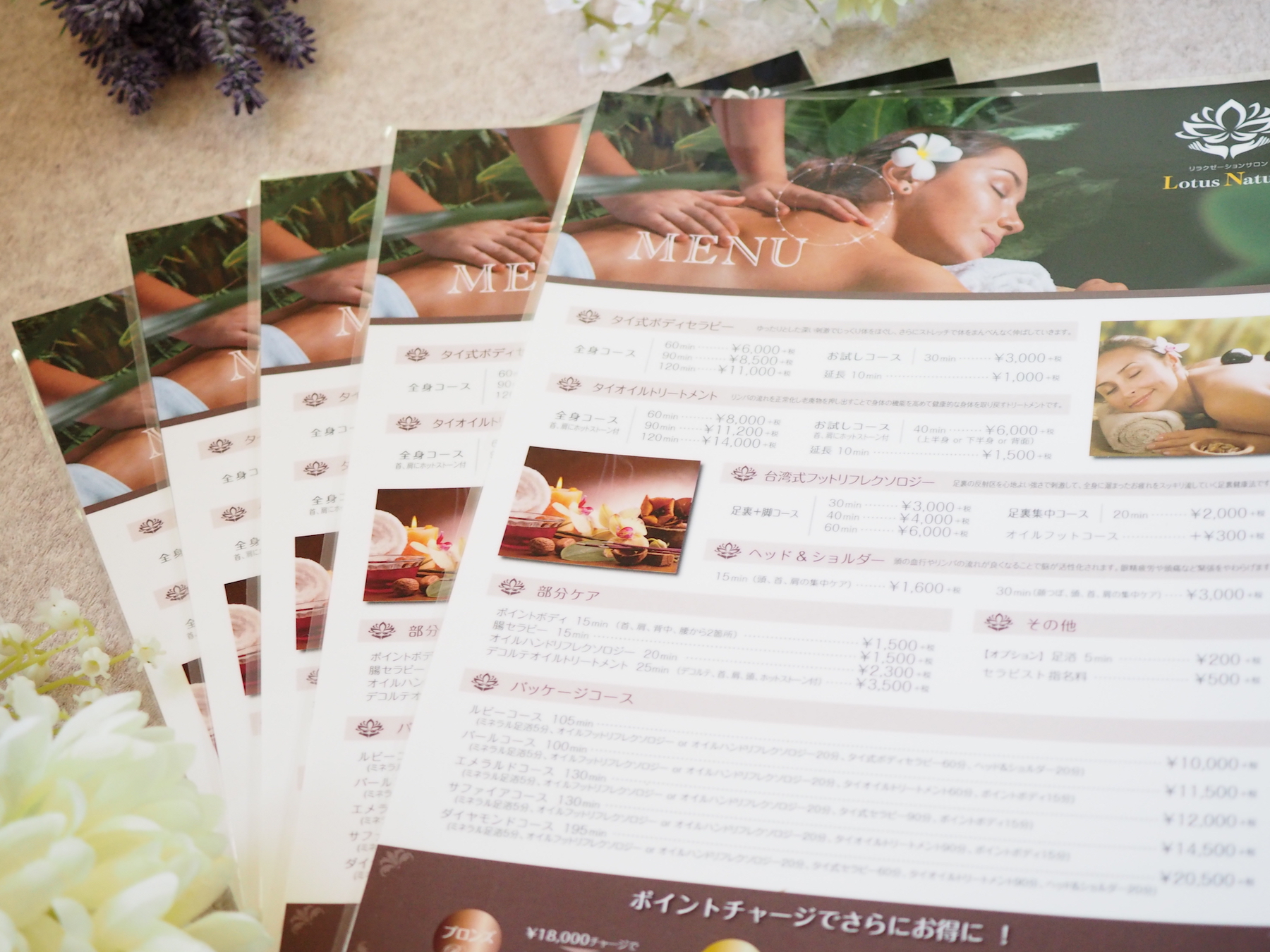 メニュー表・料金表印刷 リフレクソロジー・美容鍼灸・リラクゼーションマッサージデザイン株 JP-mix。