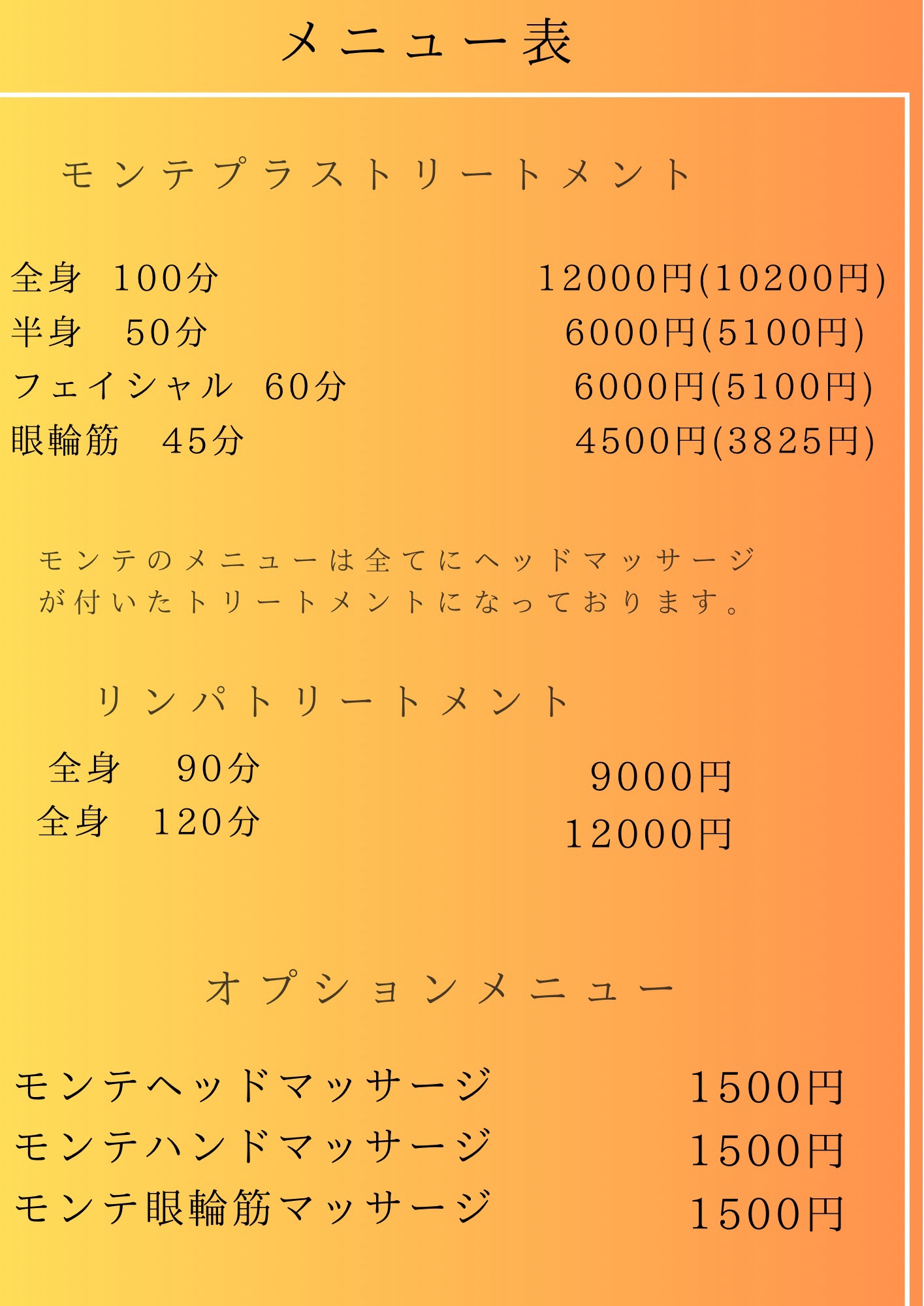 メニュー表 - サロン デ ドーム デランジェ エステティックライナーウェブ。
