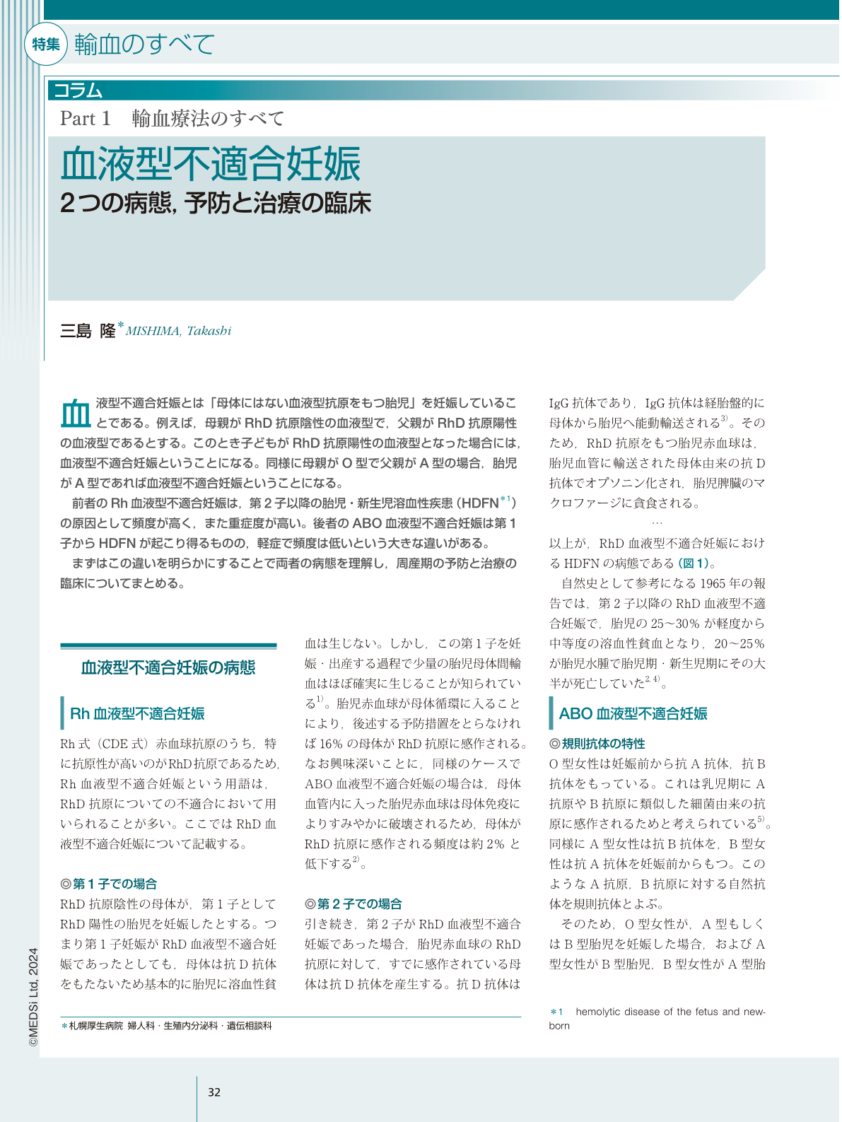 コラム① 血液型不適合妊娠—2つの病態,予防と治療の臨床Hospitalist 12巻1号医書.jp。