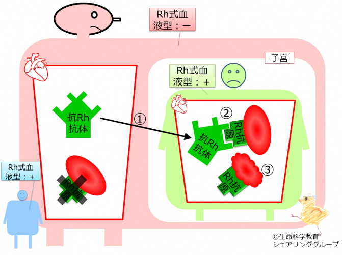 病気がみえる on X: " Rh式血液型不適合妊娠 血液型がRh − の妊婦がRh + の胎児を妊娠した場合に生じる. 1回目の妊娠 で母体が胎児のD抗原に感作され,2回目の妊娠時に母体の抗D抗体が胎盤を通じて胎児に移行し,胎児貧血などを引き起こす. 病みえ10p.157。