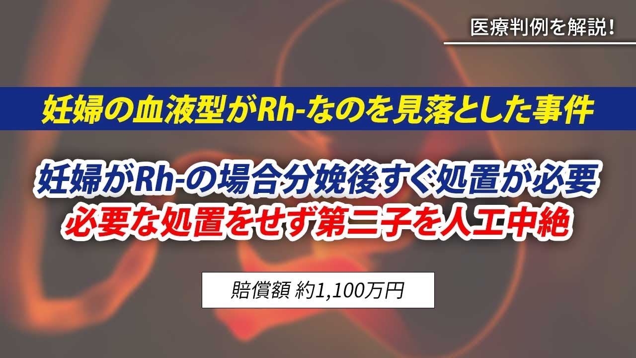 妊婦の血液型がRhマイナスであることを見落とし、間接クームステストを行わず、分娩後にグロブリン注射を実施しなかったことについて、医師の過失や、第二子の中絶との因果関係が認められた事件医学博士3名在籍産婦人科の医療ミス、医療事故、医療過誤弁護士法人。