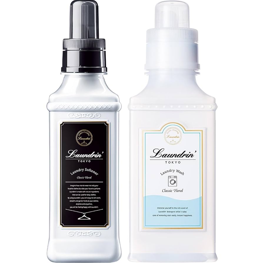 Amazonセット買い ランドリン 柔軟剤 クラシックフローラル 600ml+ 無添加 洗濯洗剤 クラシックフローラル 410gLaundrin液体柔軟剤。