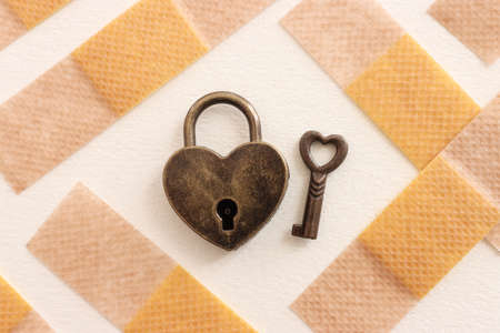 包帯絆創膏とハート型南京錠の写真素材・画像素材 Image 188008039。