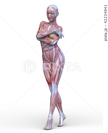 筋肉解剖図 ダンベルを持ち上げる人体模型女性のイラスト 全身正面 前向きのイラスト素材116305566- PIXTA。