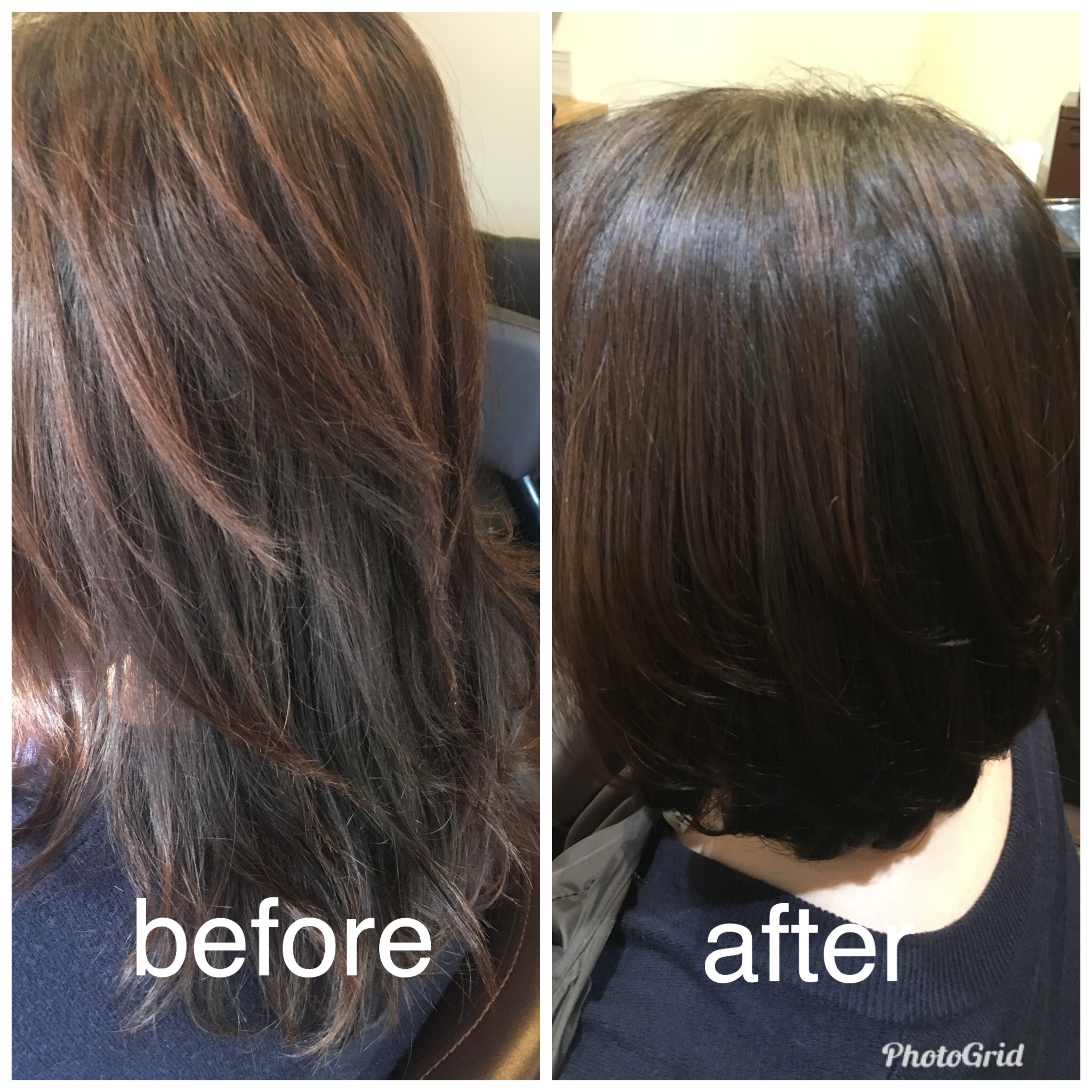 パサついてまとまらなかった髪が、綺麗なシルエットのツヤ髪になりました!長野市の髪質改善美容室Dears。