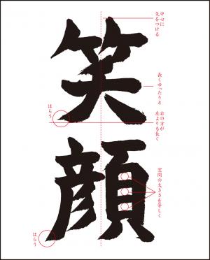 書道 習字手本 「笑顔」の書き方とコツ 毛筆・大筆・楷書。