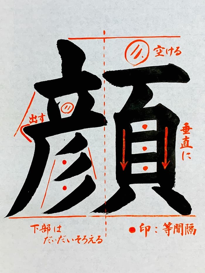 書道 習字 「顔」の書き方とコツ&お手本動画 毛筆・大筆・楷書 松本松栄堂 書道教室。