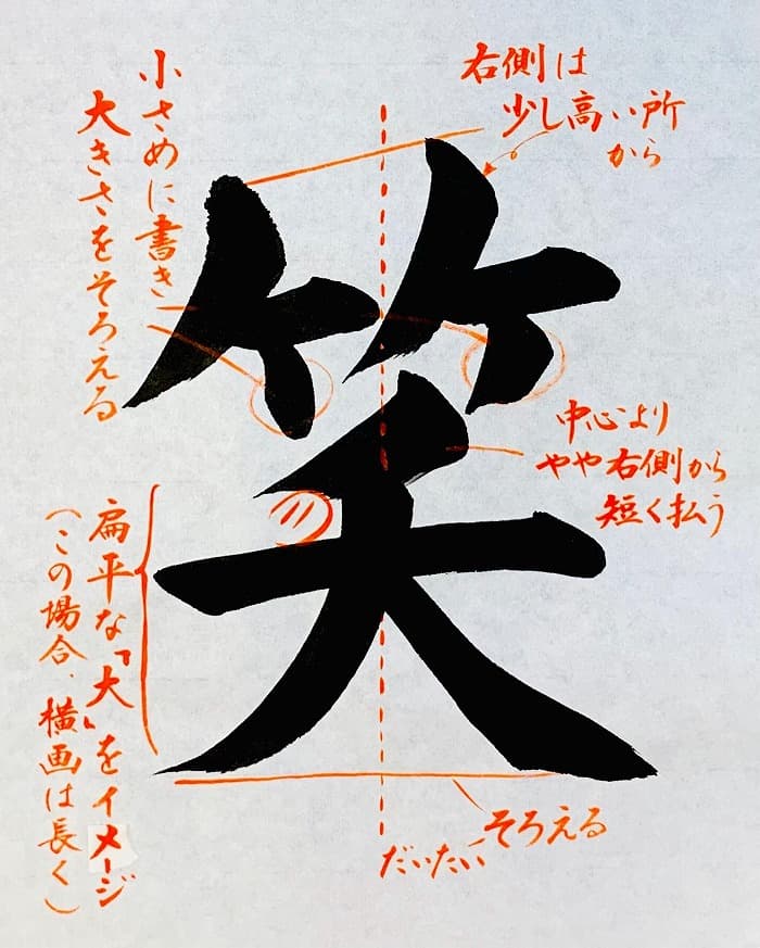 書道 「笑」の書き方とコツ&手本動画 毛筆・大筆・楷書 松本松栄堂 書道教室。