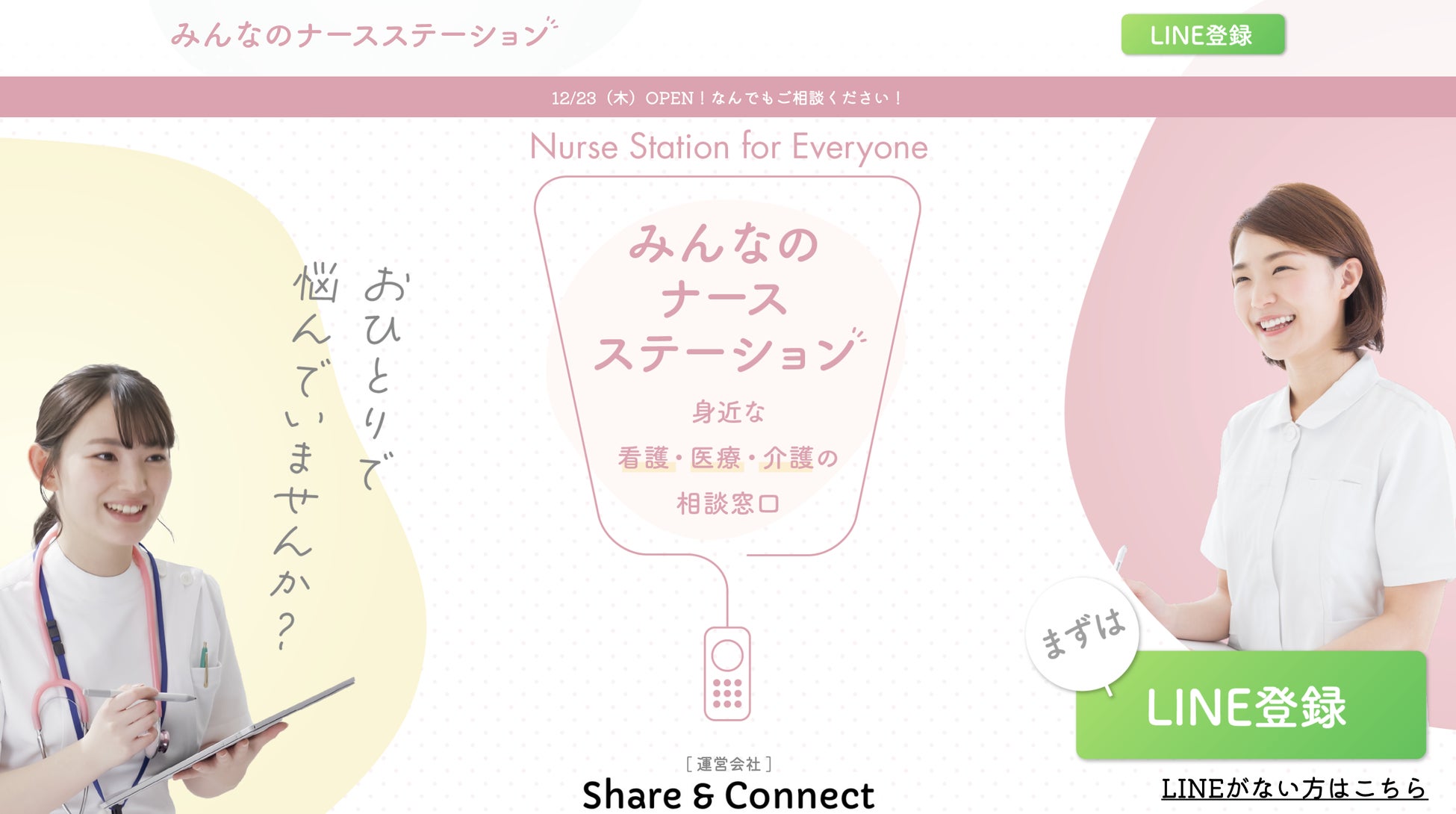 現役看護師による「みんなのナースステーション」開設!看護・医療・介護の相談窓口株式会社Share&Connectのプレスリリース。