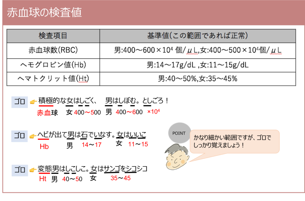 赤血球の検査値 赤血球数など薬剤師国家試験対策学習塾YAKU BASE。