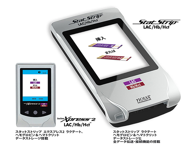 ラクテート、ヘモグロビン、ヘマトクリットの 毛細管血指先穿刺検査。