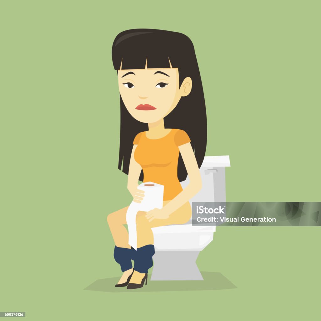 下痢や便秘に苦しむ女性 - イラストレーションのベクターアート素材や画像を多数ご用意 - イラストレーション, スクエア, トイレに座る -iStock。