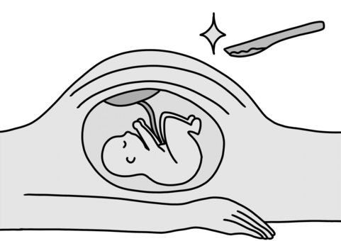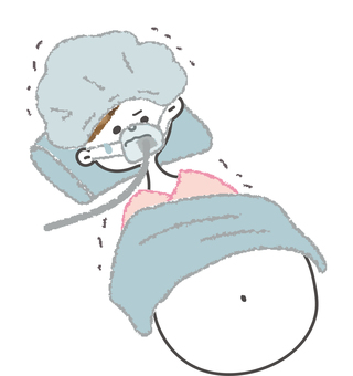 出産あるあるイラスト 「帝王切開」 by じぇにこさん子育てに役立つ情報満載 すくコムNHKエデュケーショナル。