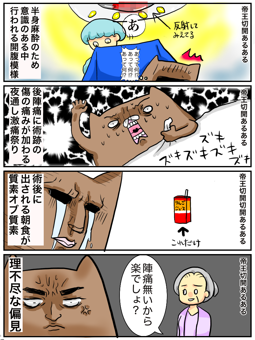 表紙のイラスト変えました! 帝王切開が楽だって言ったのは誰だ💢 壮絶!産後レポ ②悪露を出す為のマッサージを何回かしてもらうのですが、壮絶な痛みですね !でも、子宮の収縮が早められるから、いい事なのはわかっているのですが 😅麻酔も効果が終わって、薬も水も。