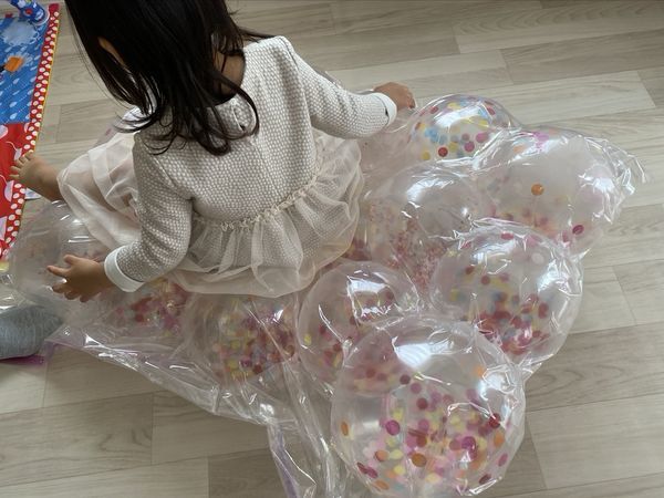 100均風船と圧縮袋でトランポリン♪ 遊びお家遊びおうち遊び知育モンテッソーリ室内遊び保育園幼稚園運動遊び運動子育て育児。