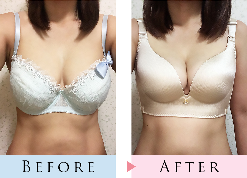 離れた胸もブラで瞬時に寄せ上げ!レースアップの効果。
