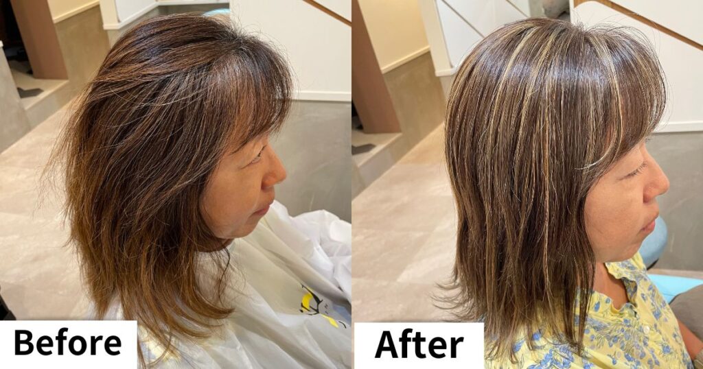 40〜50代実例白髪をメッシュでぼかす若返りヘアカラーリング。