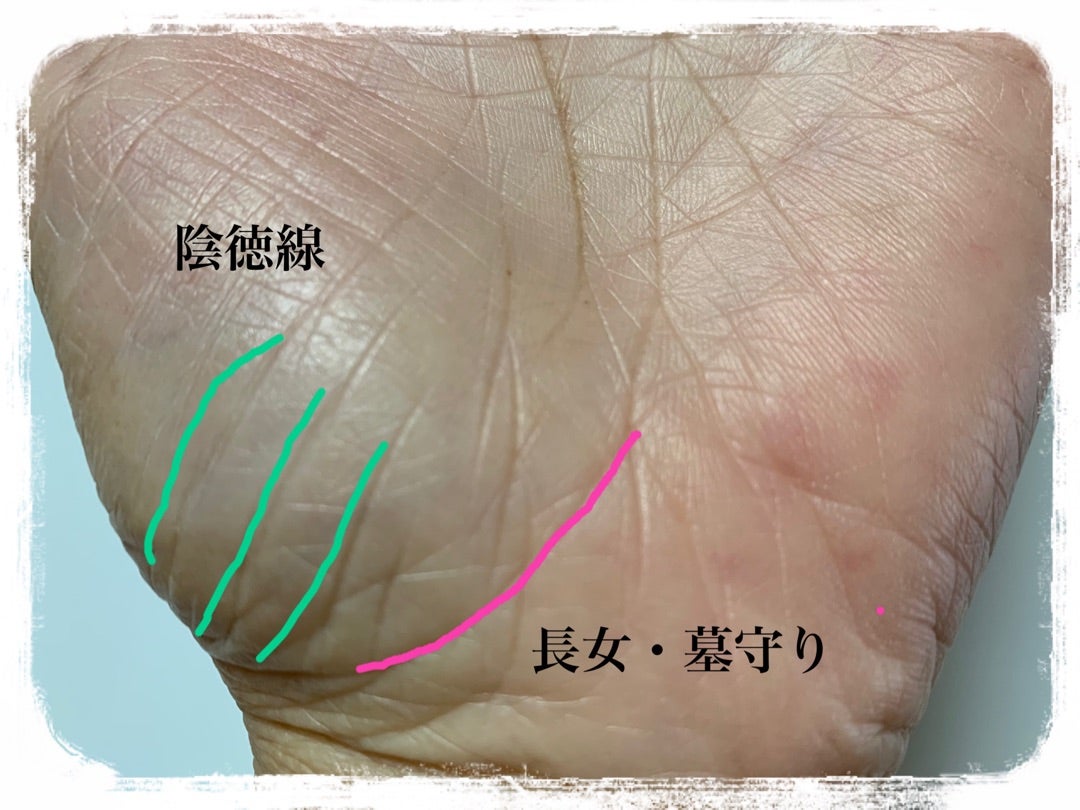 やさしい人に現れる線手相からはその人の性格や 能力を読み解くことができます 手のひらの親指側の 膨らんでいる部分を 金星丘といい 金星丘の下部を3〜4本縦に伸びる線を 陰徳線といいます 陰徳線を持つ人は 心がやさしい人で 世話好きです 先祖が積んだ陰徳のおかげ。